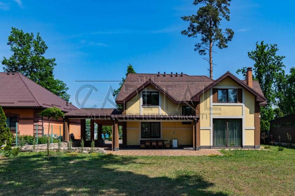 БЕЗ%, будинок 190м2, Віта Поштова, СТ «Хуторець», навколо ліс, 9 км Київ та м.Теремки, Одеська траса Загальна площа будинку - 190м2. Площа земельної ділянки 10.38 соток. Будинок знаходиться в затишному та мальовничому місці, між Вітою Поштовою та Тарасівкою, оточений дорослим хвойним та листвяним лісом, з власним виходом на озерце. Побудований на пагорбі, дає можливість насолоджуватись неперевершеним видом на ліс та озеро, крізь великі панорамні вікна будинку 24/7. Раціональне та комфортне планування, великі, світлі та просторі кімнати з панорамними вікнами. 1й поверх: столова – вітальня, кухня, гердероб, санвузол, гараж, котельня; 2й поверх: три окремі спальні кімнати, санвузол. Об’єкт для поціновувачів заміської тиші та ранкових піщих прогулянок!