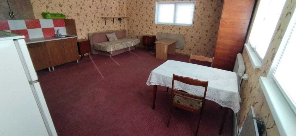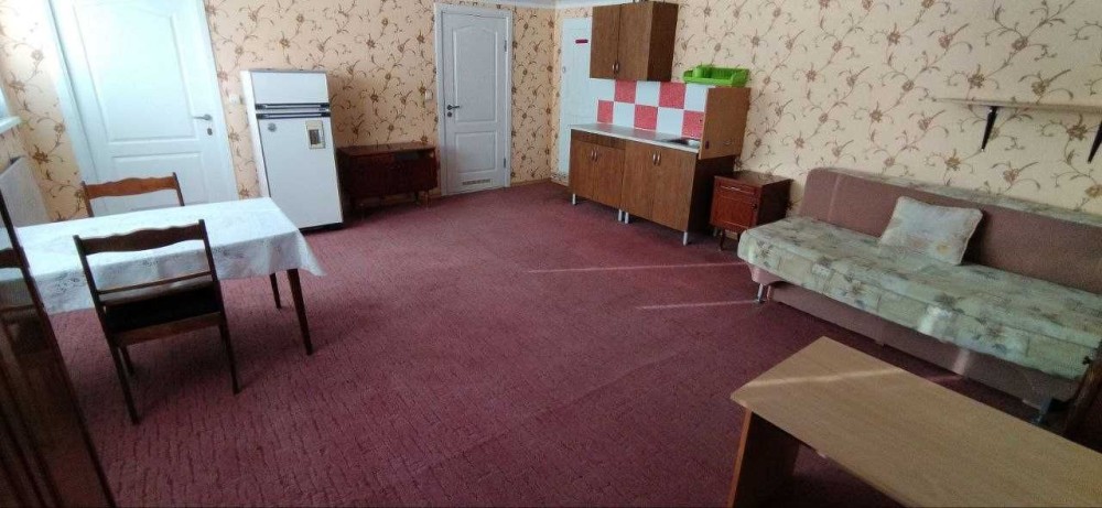У просторій основній кімнаті є місце для приготування їжі (індукційна плита), обідній стіл, стільці, холодильник та шафи для білизни. Також є зручний диван, на якому приємно відпочити після трудового дня.