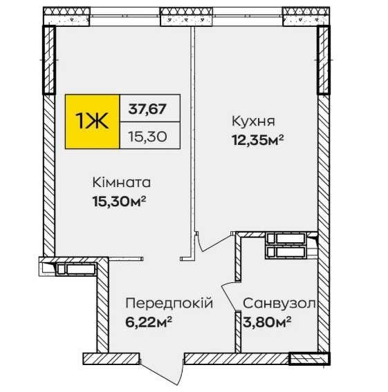 Площа: 37,67 м²