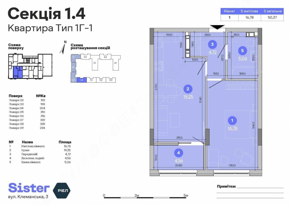 Пропонуємо вам 1-к квартиру площею 50.37 м² у ЖК Sister, за адресою: вул. Клеманська, 3 — Дарницький район, м. Київ.