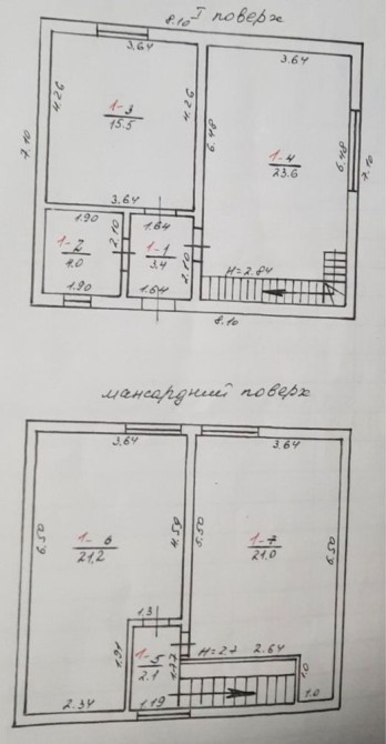 3 кімнати, санвузол, кухня-вітальня.