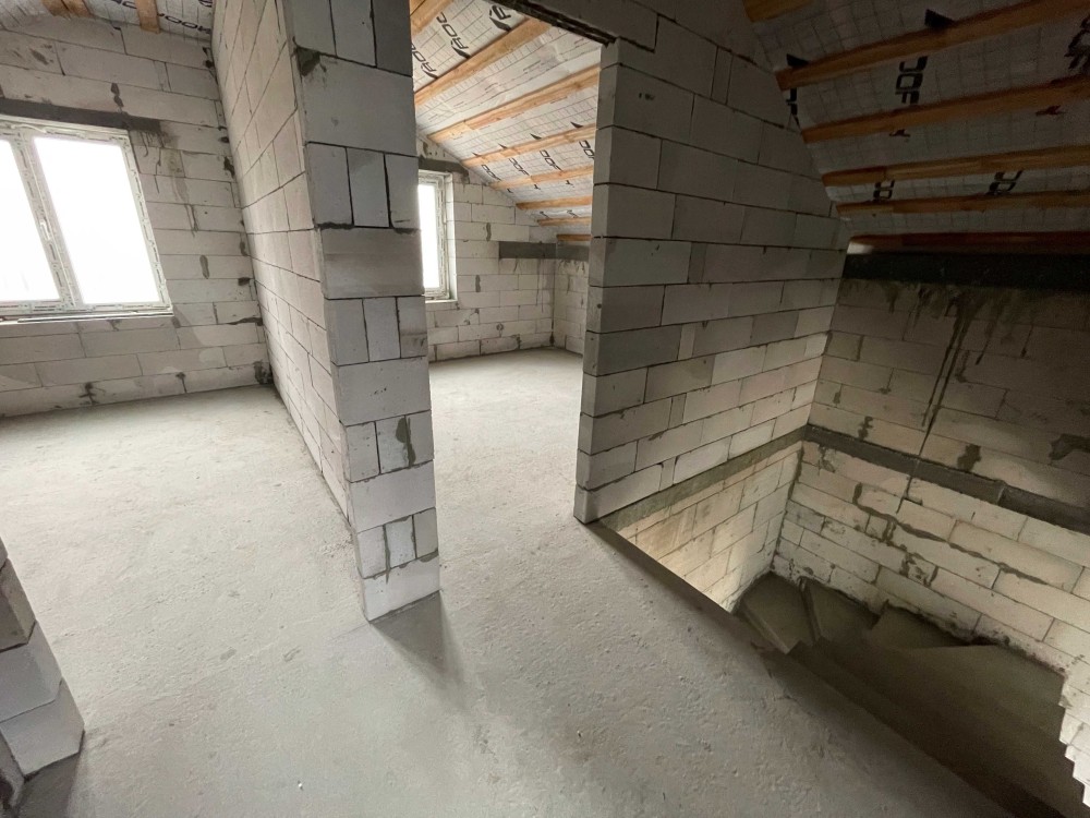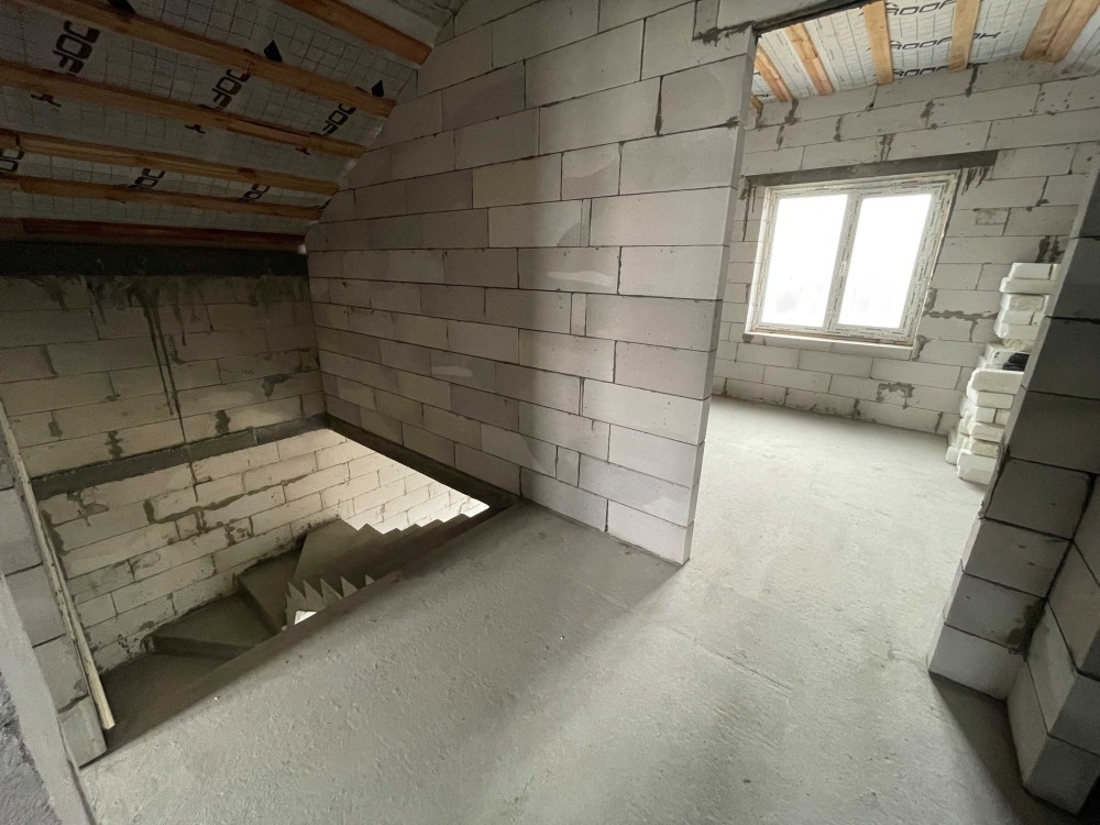 Монолітне перекриття та сходи. Дах корейська металочерепиця, утеплення мін вата 200мм.