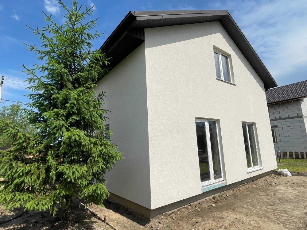 Автоматичні ворота. Вʼїзна група буде вимощена тротуарною плиткою. Фасади зроблять як тільки для цього будуть сприятливі погодні умови. Також бонусом будуть зелені насадження біля будинку.