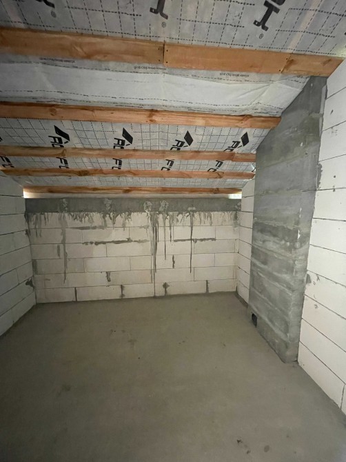 Монолітне перекриття та сходи. Дах корейська металочерепиця, утеплення мін вата 200мм.