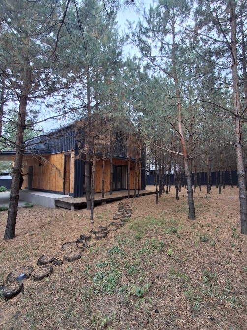Будинок розташований у тихій зеленій місцевості передмістя Києва, всього за 1,5 км від каскаду озер села Бобриця. Територія облагороджена та оточена збереженими соснами