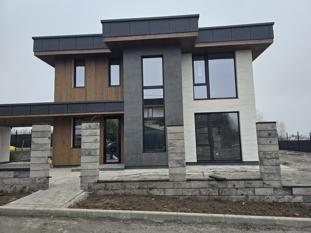 Будинок з цегли, утеплювач 150 мм. Перекриття - моноліт 1на 2 поверх, монолітні з/б сходи. Вікна Саламандер із профілем 70 мм. В середині штукатурка.