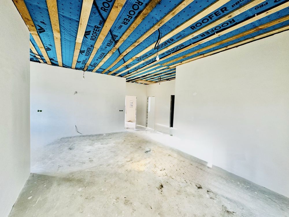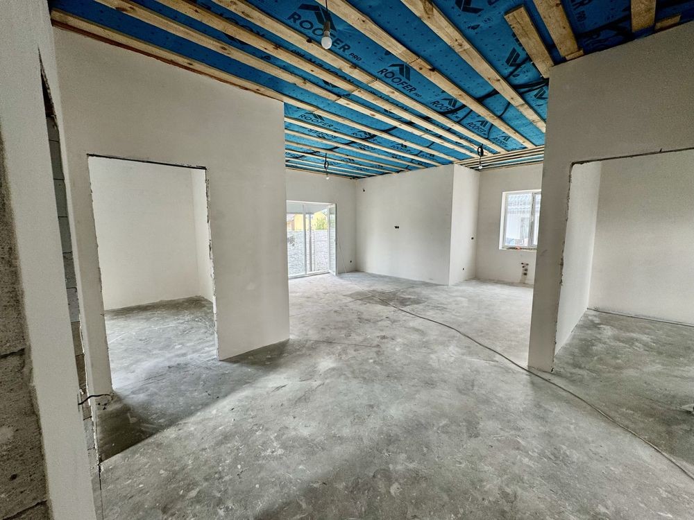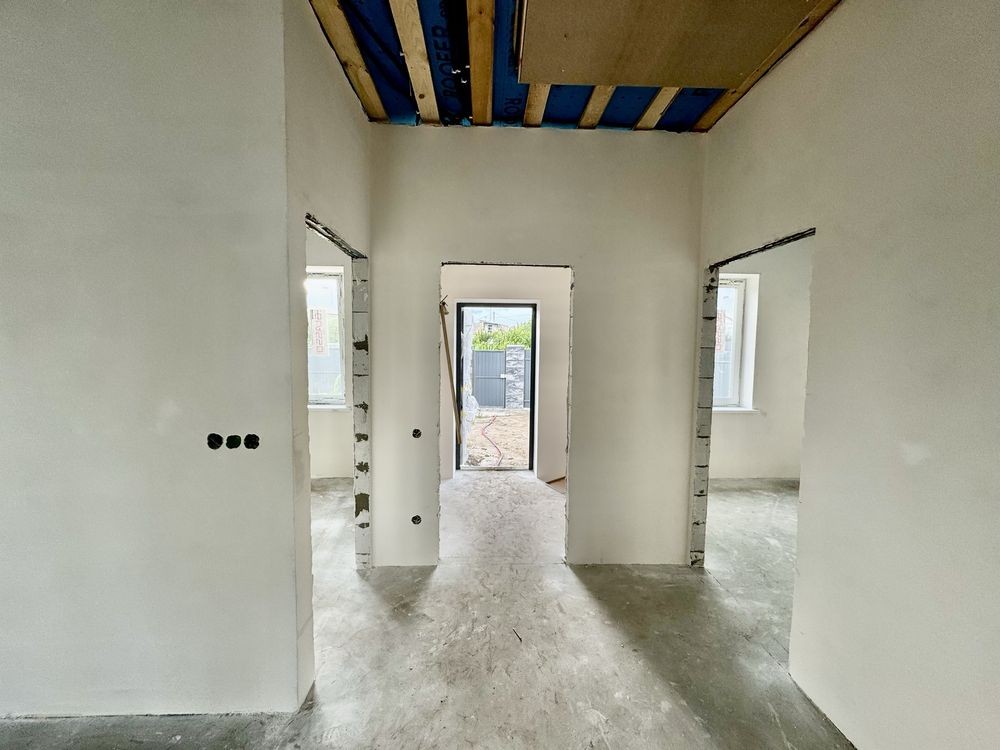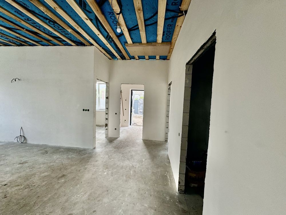 • будинок у стані під чистового оздоблення: розведена електрика, виконана штукатурка стін, виведені мокрі точки