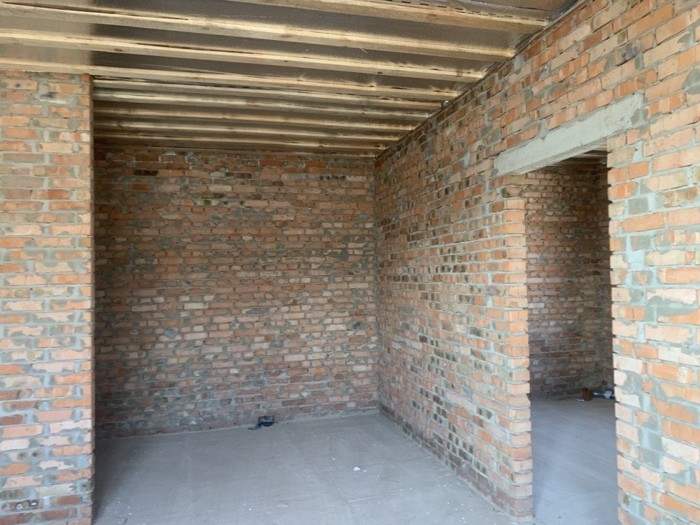 Хороший район міста, будинок цегляний, 3 кім.+ кухня студіо, с/у. Стан після забудовника, заведено світло, вода- скважена, септик- переливний. На ділянці залитий фундамент під паркан.