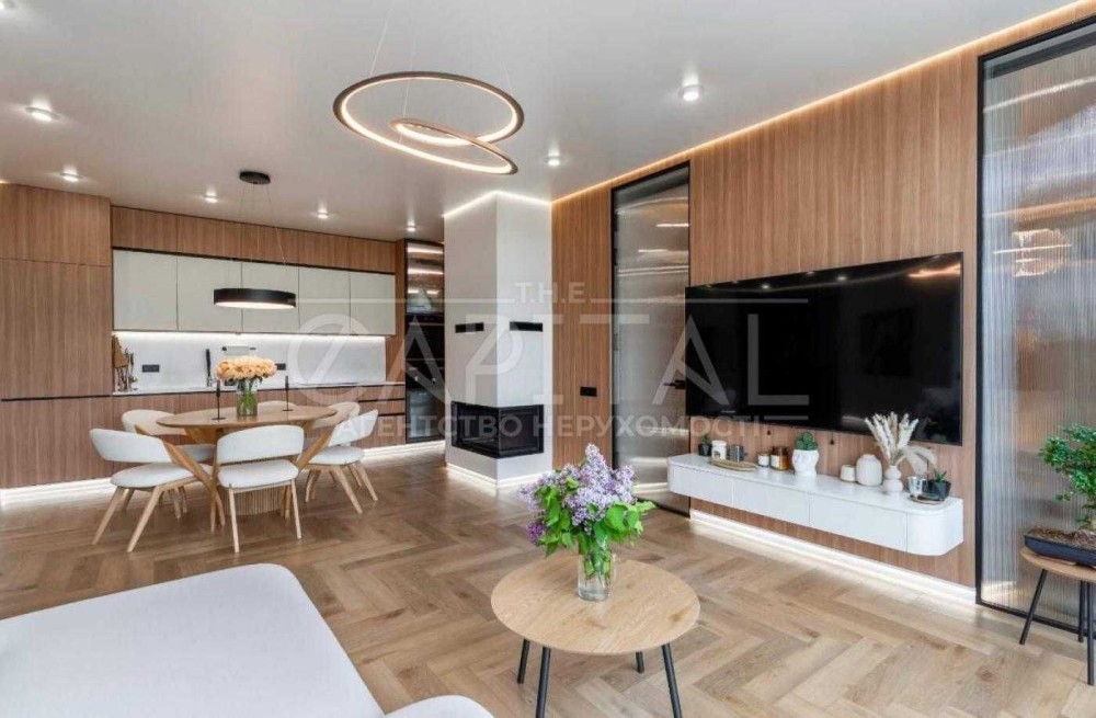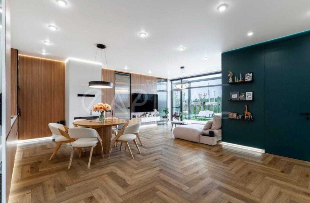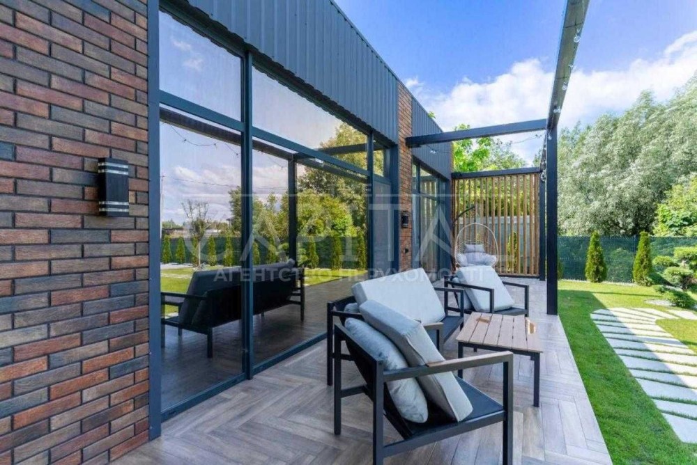 Енергоефективний будинок з індивідуальним дизайнерським оздобленням. Локація розташована на найменш завантаженій Новообухівській трасі, що забезпечує швидку та комфортну поїздку в Київ.