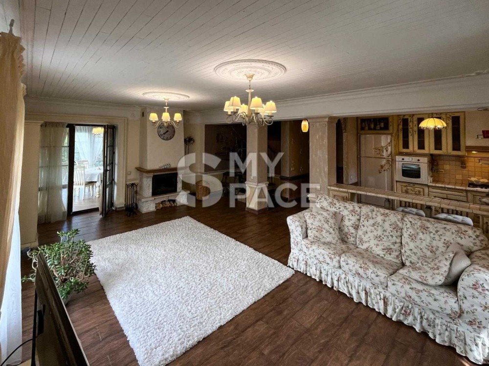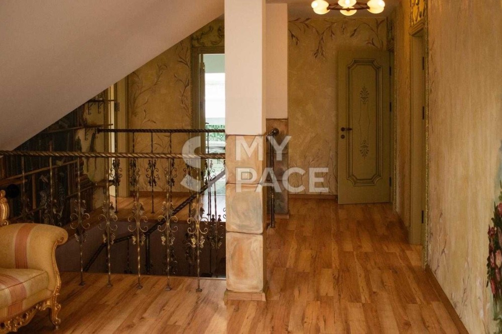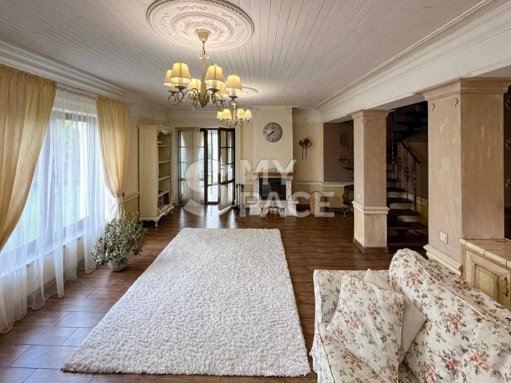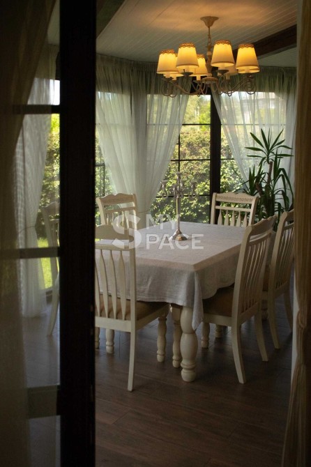 Будинок продається повністю укомплектований меблями, що робилися на індивідуальне замовлення та предметами інтр'єру. Природна гамма кольорів: єднання з природою простежується у всьому. Натуральне дерево, декоративна штукатурка та елементи ручного розпису та гіпсового оздоблення.