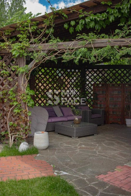 Територія з ландшафтним дизайном виглядає красиво та доглянуто, газон з автоматичним поливом, декоративні та плдові дерева. Візуально територія ділянки розділена на зони- відпочинку, барбек'ю, господарську частину.