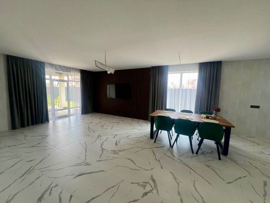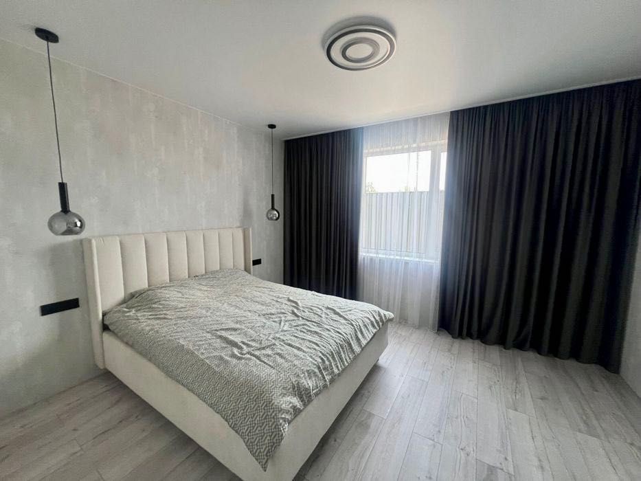 У будинку три окремі кімнати, сучасний санвузол та простора кухня-студія з виходом на терасу, де можна проводити вечори з родиною чи друзями.