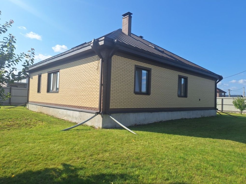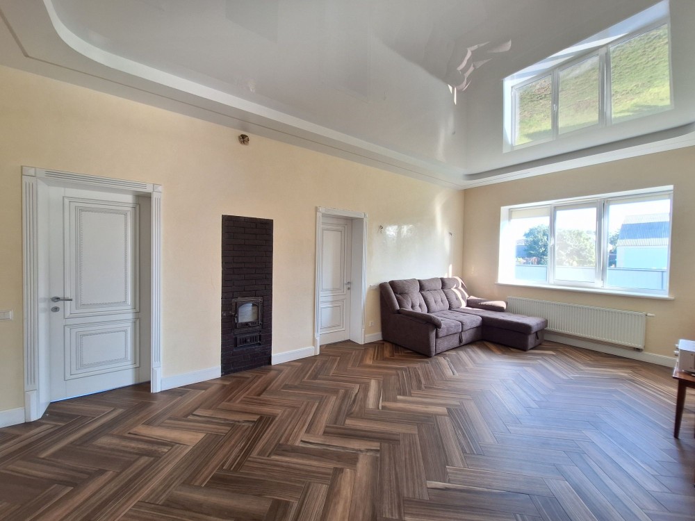 Будинок побудований на надійному фундаменті з бетонною плитою, стіни будинку викладено з двох рядів цегли, між якими прошарок мінеральної вати, дуже теплий і економний будинок по опаленню. Метал криші дорогий, з найкращих марок Німеччини. Вхідні двері високої якості, міжкімнатні двері - масив дерева, вікна в будинку енергозберігаючі з ламінуванням, всі стіни в будинку - це дорога декоративна штукатурка, стеля натяжна з елементами гіпсокартону, вбудованим освітленням. Тепла підлога скрізь. де покладена плитка, радіатори в кімнатах