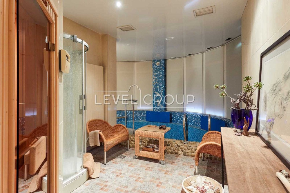 Сантехніка “Duravit”, 'VileroyBoch”, “Jacuzzi”. Смішувачі 'Axor, 'Fillip Stark, 'Grohe”. Сауна “Harrtia”.