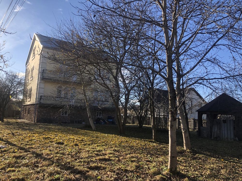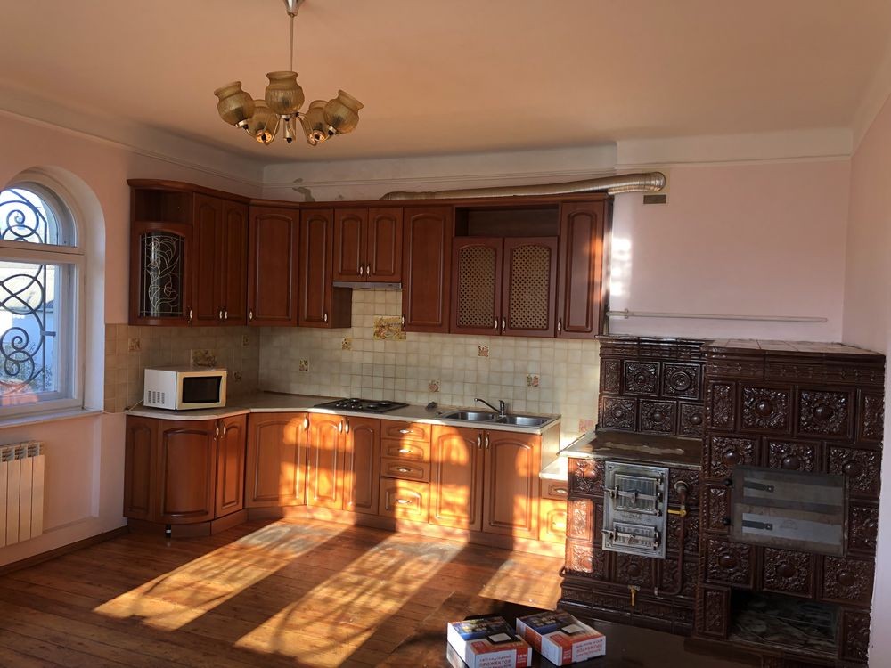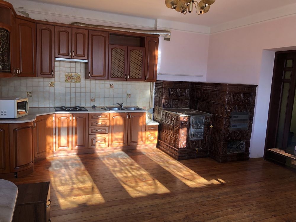 Здається в оренду житловий будинок на 3 поверхи у селі Зимна Вода, біля Львова, 1.5 км від Епіцентру на Городоцькій, загальна площа 400 м кв., високі стелі, деверʼяні подвійні вікна, фасад будинку утеплений пінопластом, повністю огороджений, подвір’я закривається на ключ, земельна ділянка 18 соток, довкола будинку поставлена бруківка з натурального каменю, є місце на подвір’ї для паркування 3 автомобілів одночасно (гараж і горище не здається). На 1 (цокольному) та 2 поверсі грати на вікнах, 1 поверх плитка на підлозі, всі інші поверхи дубовий паркет (2 та третій поверх), сходи дубові на металевому каркасі, опалюється 2-функційним котлом (гріє батареї та воду), газ та світло (3 фази) на лічильник, вода центральне водопостачання - на особу, вивіз сміття за договором 2 рази на місяць (обслуговує САТ Львів). На 1 поверсі (цокольний): є окремий захід з першого поверху боковими дверима, 1 санвузол (туалет), 1 кімната ізольована, 1 сауна (електрична) з душовою у кімнані (передбанник) разом, великий коридор, і бойлерна-котельна в іншому коридорі, 1 кухня: газова плита, пральна машина, бойлер на воду (за необхідності можна включати окремо), перший поверх перекривається (є двері між 1 та верхніми поверхами). Центральний вхід у будинок з 2 поверху через парадні двері. На 2 поверсі: 1 кухня: газова плита, піч на дрова та газ, холодильник з морозильною камерою, 2 кімнати роздільні (спальня та вітальня), великий балкон, санвузол - туалет та ванна роздільні, великий коридор. На 3 поверсі: 4 спальні, великий балкон, санвузол - туалет та душова роздільні, великий коридор.