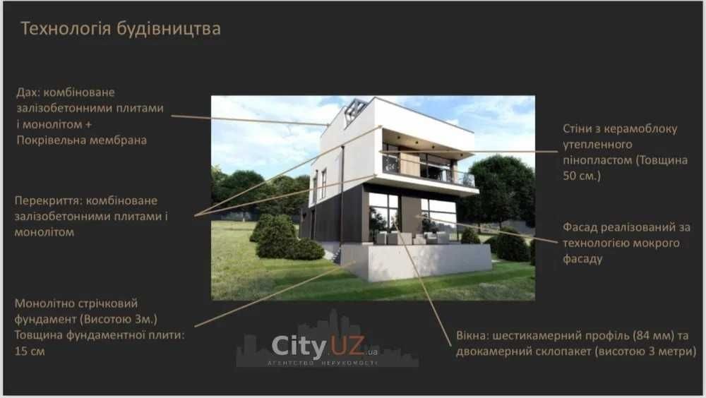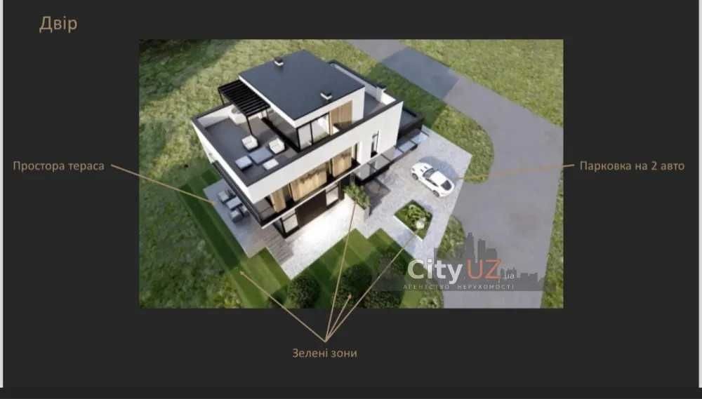 Пропонуємо вам унікальний проєкт будинку на два поверхи, з релакс зоною на даху, там буде розташоване джакузі, кімната відпочинку де ви зможете насолоджуватися краєвидами міста.