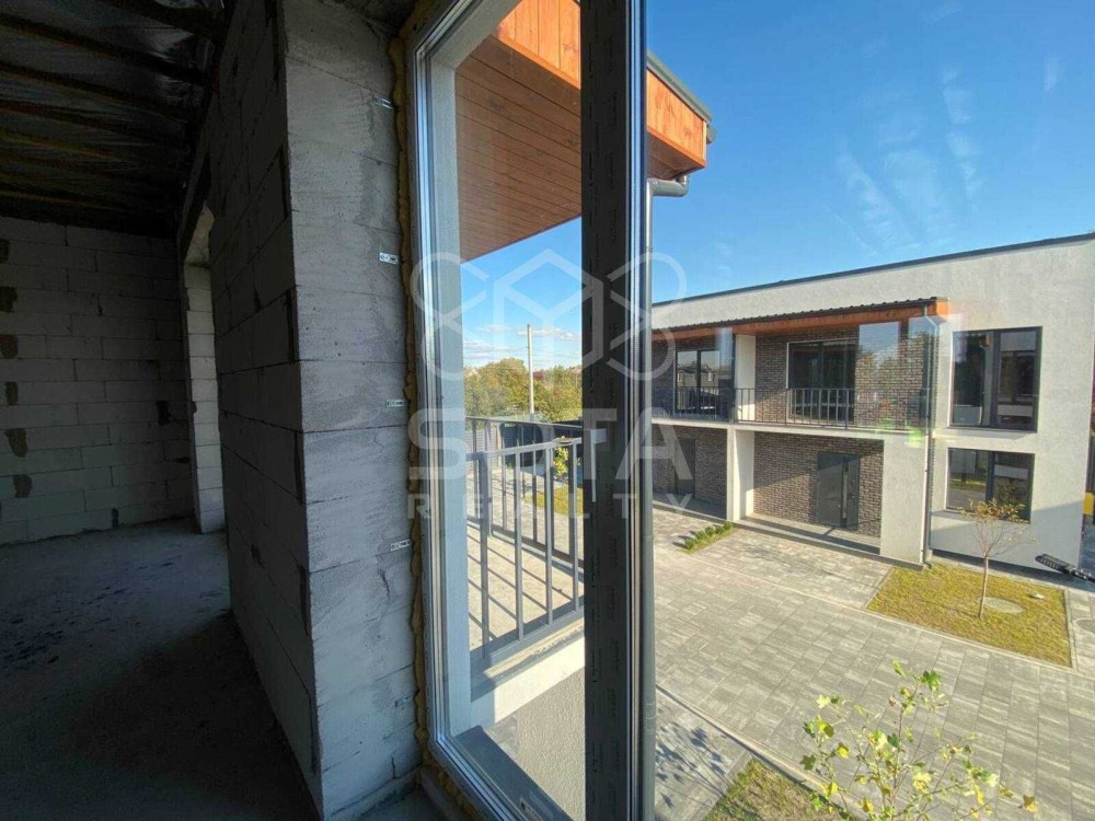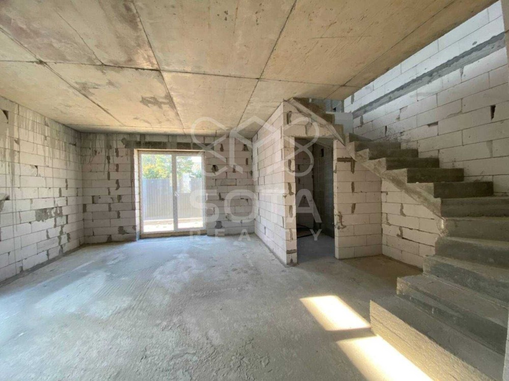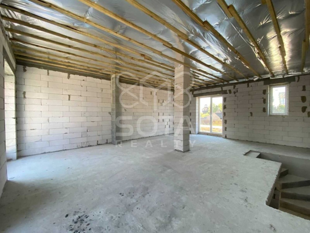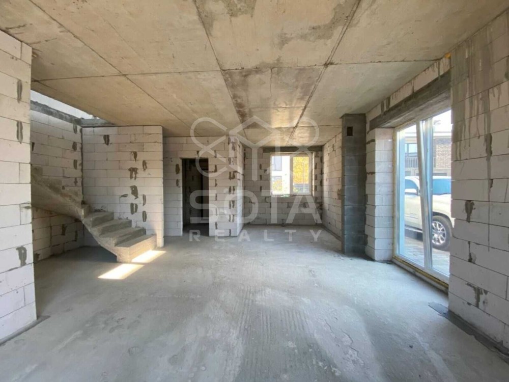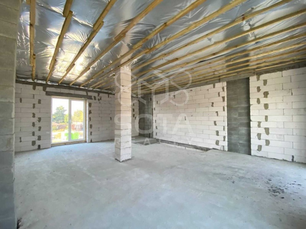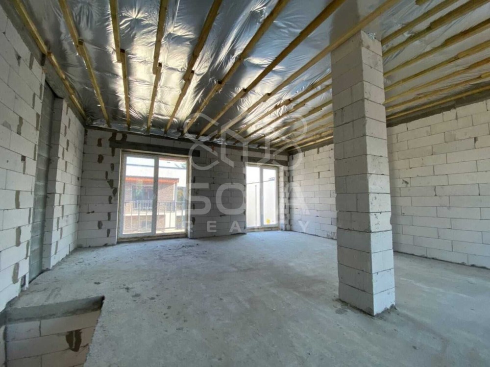 Дуплекс 112 м2, 2 поверхи, на першому велика кухня-вітальня 35 м2 з виходом на дворик, санвузол, на другому поверсі можна зробити 2 або 3 окремі кімнати, санвузол, є вихід на балкон. На даних фото відкритий простір без перегородок, побудуємо стіни без додаткових витрат за вашим побажанням.