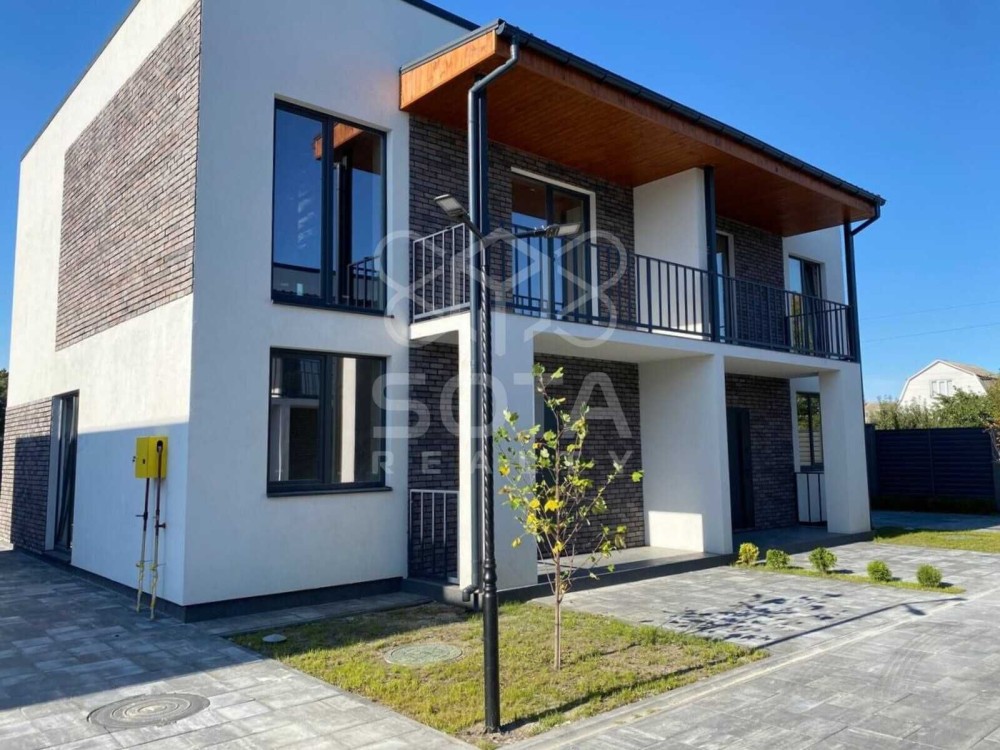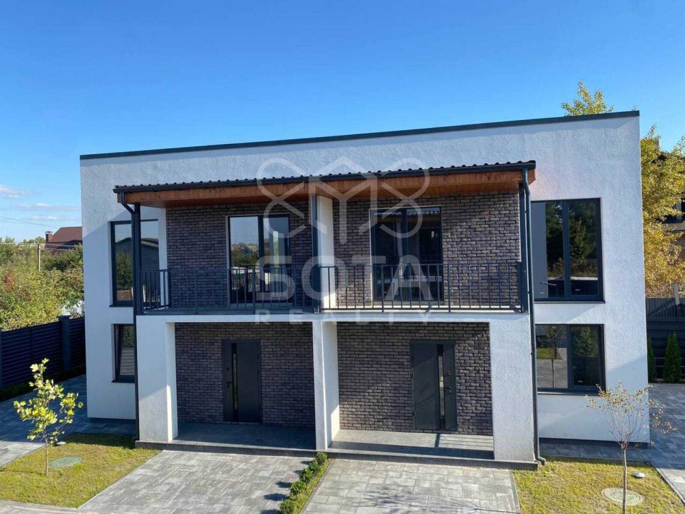 Новий будинок дуплекс в закритому котеджному містечку на першій лінії біля Дніпра на Осокорках неподалік клубного комплексу Sky River. Є відео огляд.