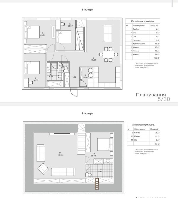 Перший поверх — 100 м², мансарда — 60 м².