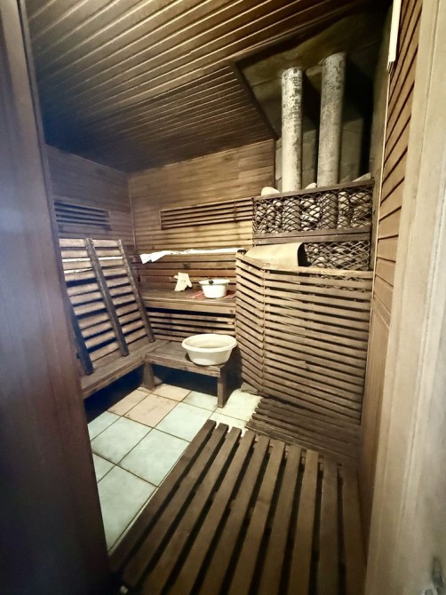 Окрема баня на дровах із парною, кімнатою відпочинку з каміном, кухнею, басейном і санвузлом.