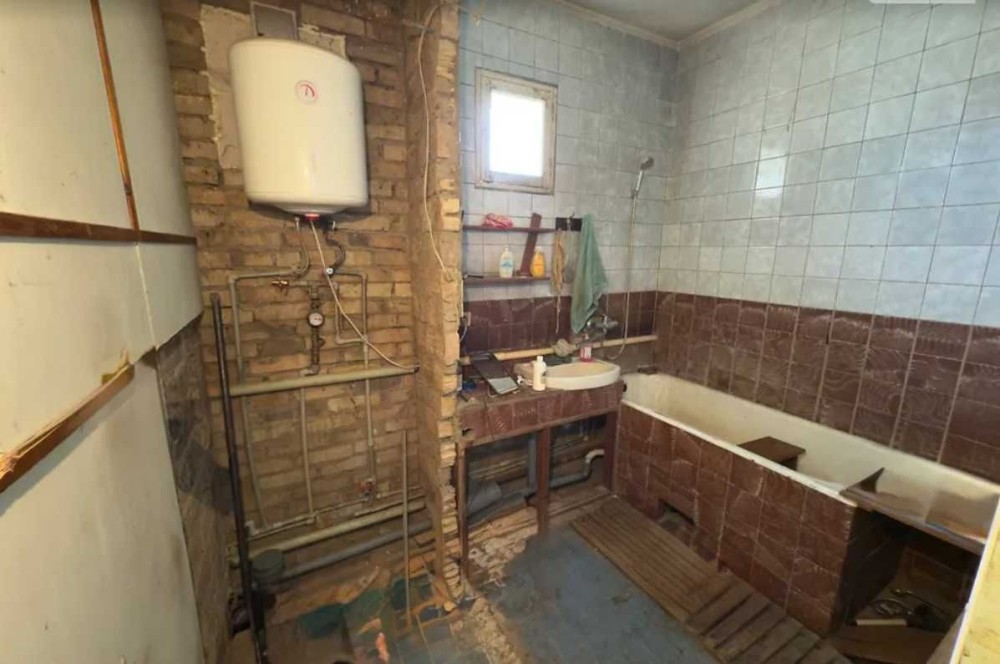Потребує капітального ремонту, на участку є гараж, підсобне приміщення та вуличний туалет.
