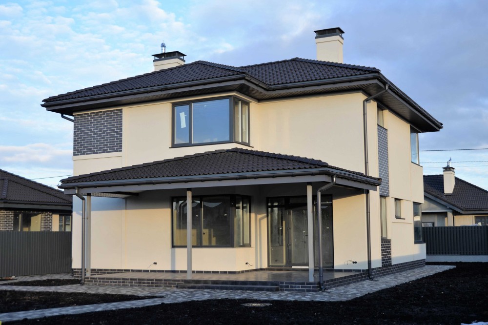 - Дах натуральна цементно-піщана черепиця з міжповерховим утепленням 200 мм;
