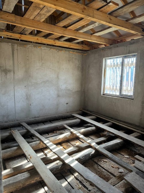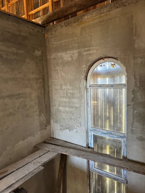 Всередині будинку поштукатурені стіни і забетонована підлога на першому поверсі.