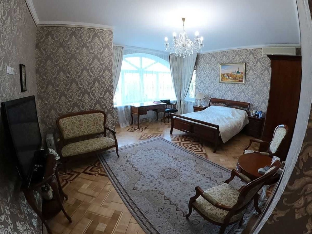 У будинку простора камінна зала, житлові кімнати, спальні та кабінет, а цокольний рівень із басейном, сауною і спортзалом створює повноцінний wellness-простір для родини. Окремі будівлі на ділянці доповнюють формат заміського життя: пляжний комплекс, банкетна зала, винний льох, гараж і елінг для човна з прямим виходом до води.