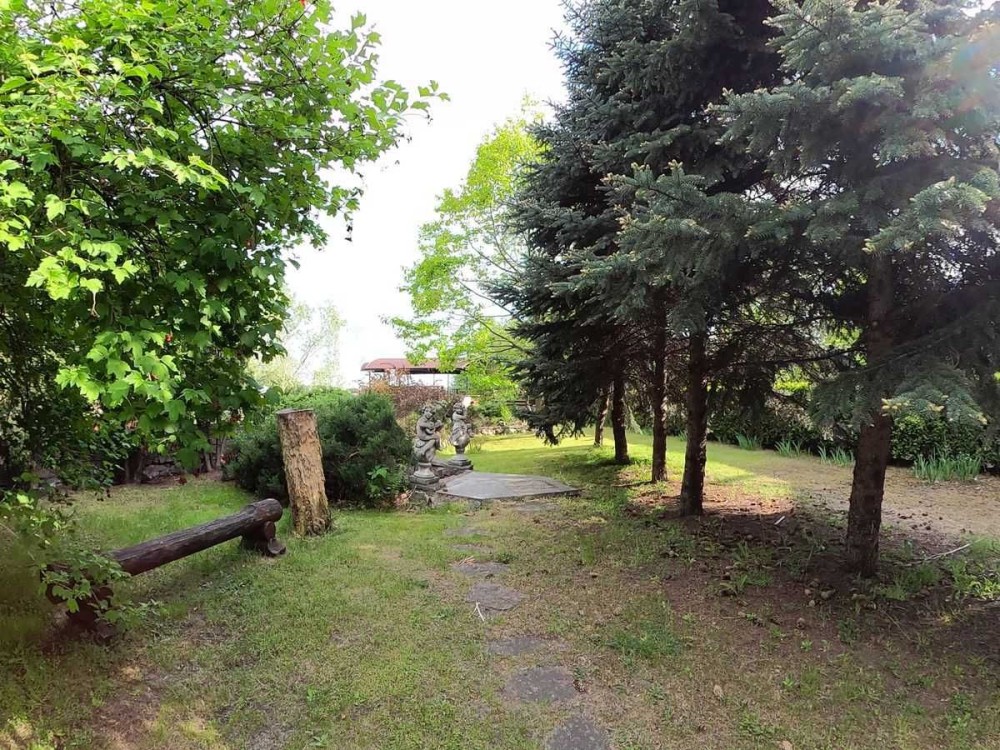 Ділянка площею 41 сотка — це продуманий природний ландшафт. Професійний дизайн, декоративні дерева та кущі, привезені з різних куточків України, формують цілорічне зелене середовище, яке змінюється з сезонами і завжди виглядає доглянутим. Дорослі насадження, плодовий сад, затишні алеї та приховані зони відпочинку створюють атмосферу приватного парку з прямим виходом до води.