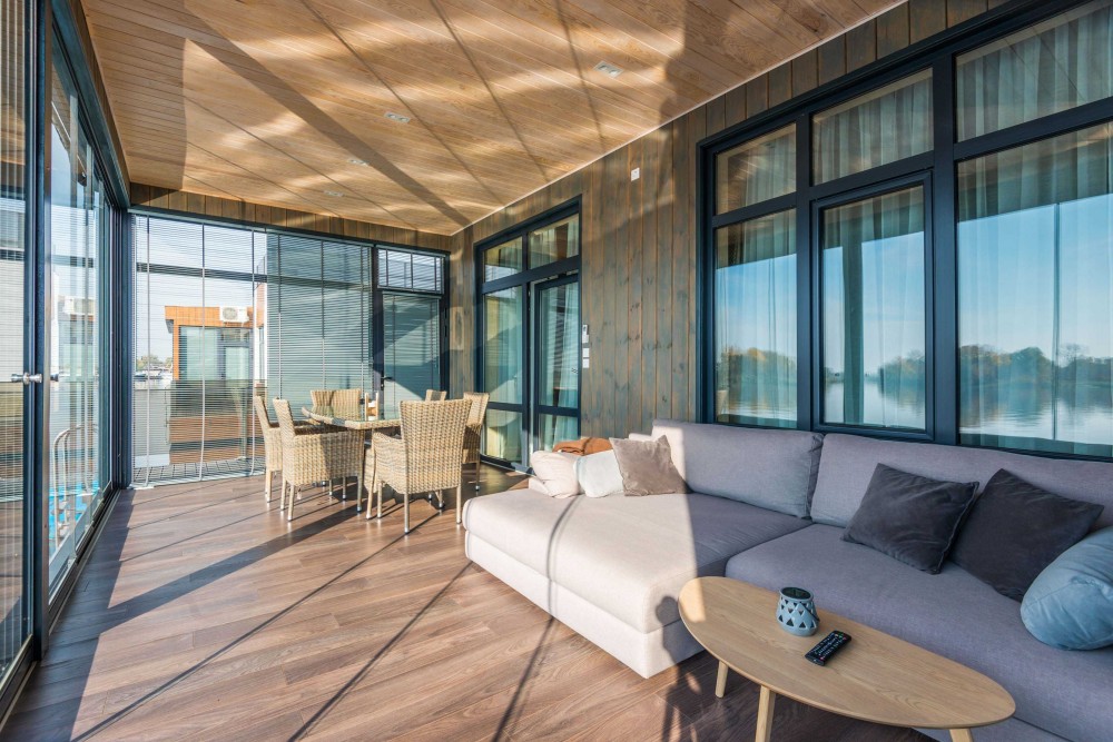 Сучасний одноповерховий будинок на плаву з плоским дахом, площею 120 кв.