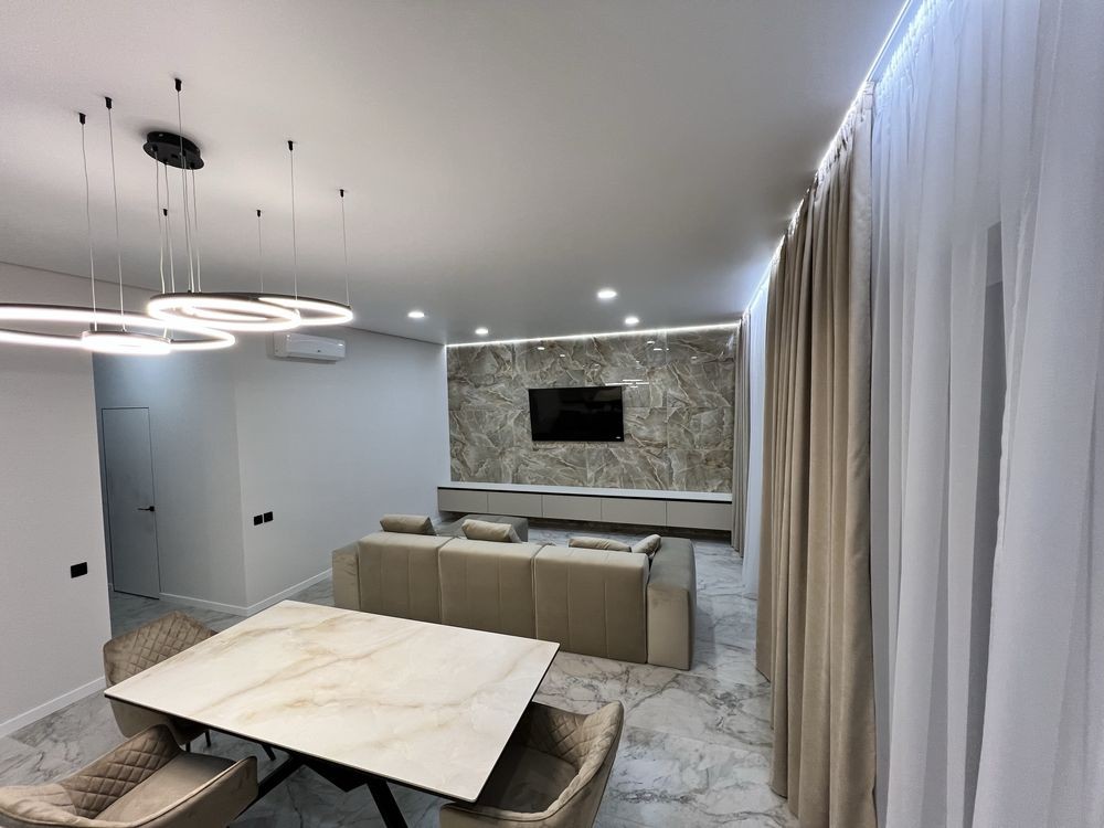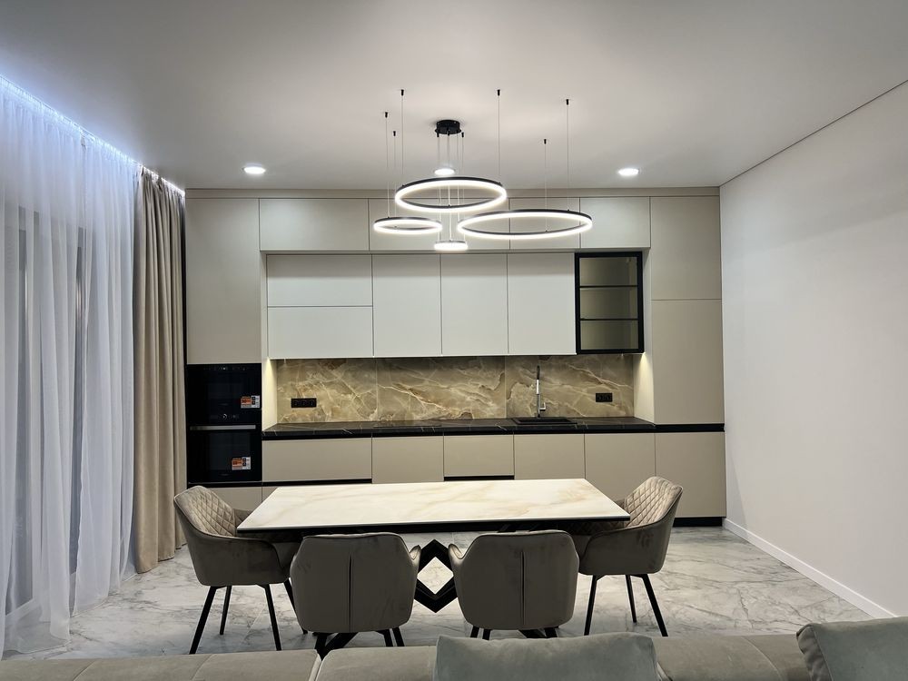 - простора кухня-студія 40м2 з великою зоною для відпочинку та прийому гостей.