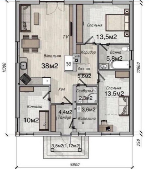 • Загальна площа 110 м2