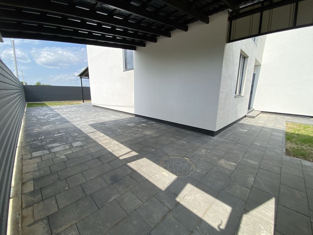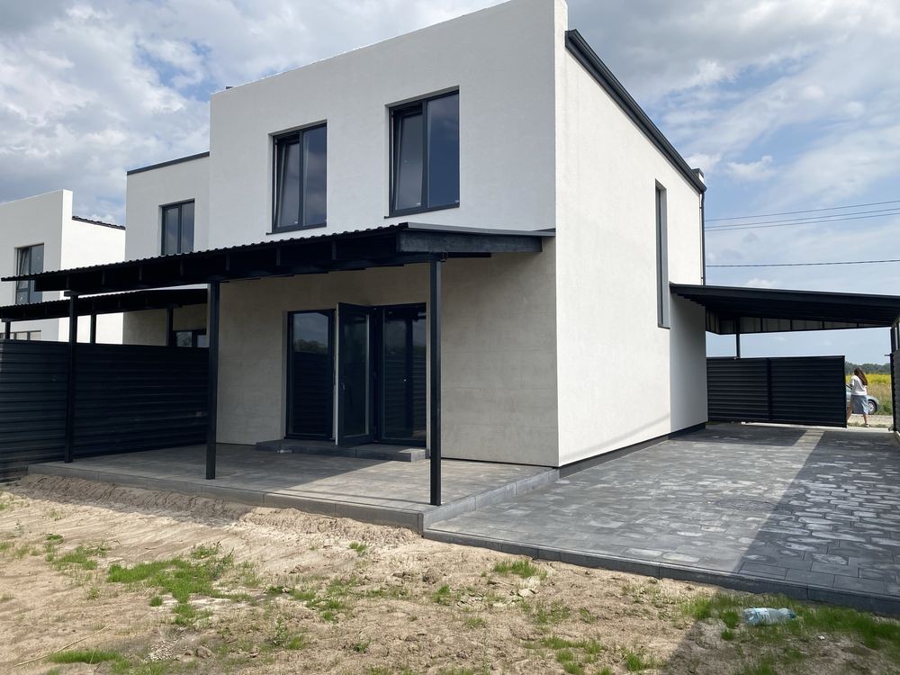 Продам сучасний будинок типу дуплекс площею 106 м² з продуманим плануванням, навісом для авто та затишною критою терасою ідеальне рішення для комфортного життя вашої родини.