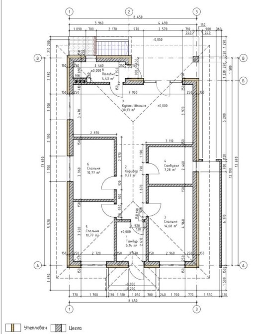 Планування: коридор,3 -спальні,санвузол,кухня -вітальня,котельня,підвал,тераса.
