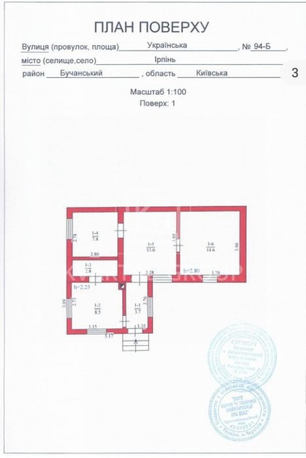 Частина будинку (дуплекс, 1/3 частки) з окремим входом.Адреса: вул. Українська, 94-Б.Рік будівництва: 1959.Загальна площа: 50,4 м.кв.Житлова площа: 35,4 м.кв.Стан: Потребує капітального ремонту.Об'єкт складається з:Кухні площею 8,5 м.кв. (з двома вікнами).Ванної кімнати площею 2,8 м.кв.Коридору (з вікном) площею 3,7 м.кв.Прохідної кімнати з вікном площею 13,0 м.кв.Двох окремих кімнат площею 7,8 м.кв. та 14,6 м.кв.Висота стель вар'юється від 2,5 до 2,8 м. Перекриття – дерев'яне. Важлива перевага: Вікна у всьому об'єкті замінені на нові, пластикові.Комунікації та Земельна ДілянкаКомунікації: Газ та Електрика підключені окремо (індивідуальні лічильники).Каналізація: Септик (за інформацією власника, не чистився 40 років, самодренування в пісок).Земельна Ділянка: Фактична площа 3 сотки (0,0314 га, або 70,2 м.кв.).Статус оформлення: Недооформлена. Перебуває на стадії Затвердження проектної документації та приватизації. Продаж передбачає завершення процесу оформлення землі новим власником.Об'єкт вимагає комплексного капітального ремонту:Заміна покрівлі (латаний шифер).Повна заміна електропроводки та системи опалення.