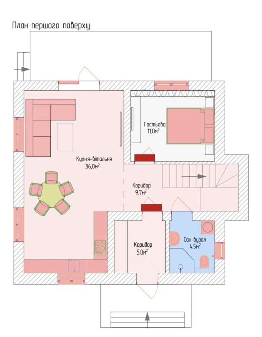 Площа будинку - 135 кв.м.корисної площі + 30 кв.м тераса + 30 кв.м мансарда.