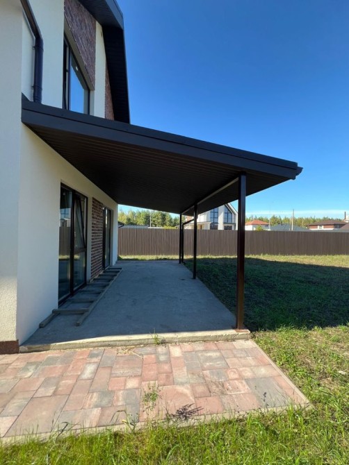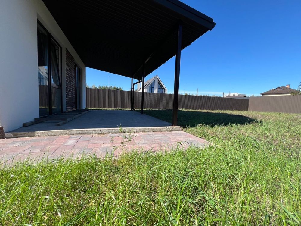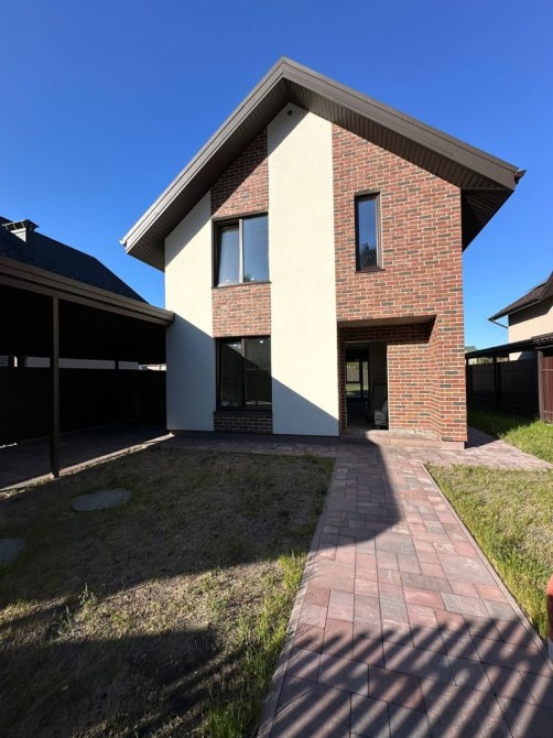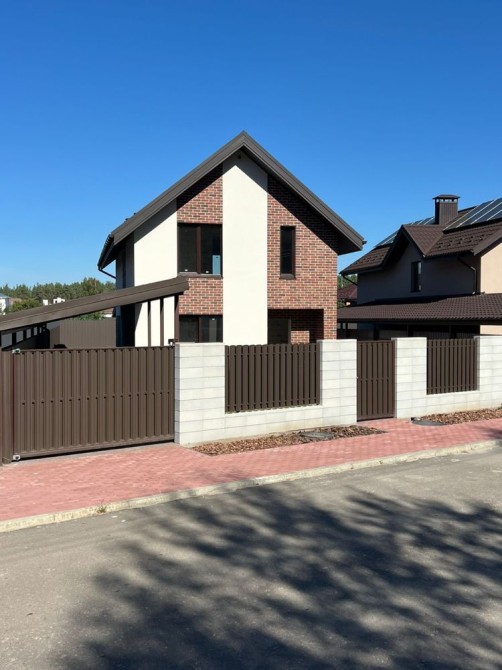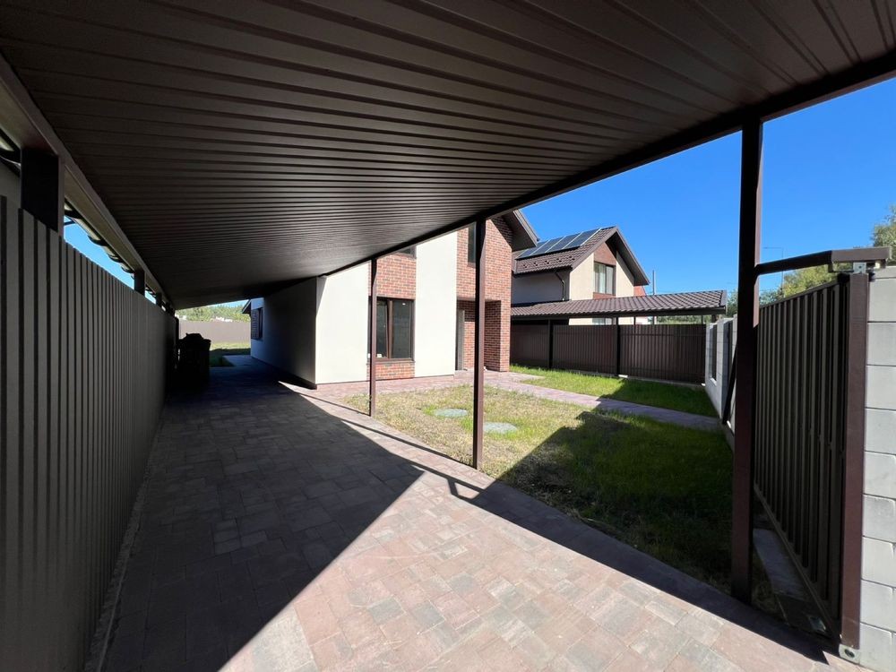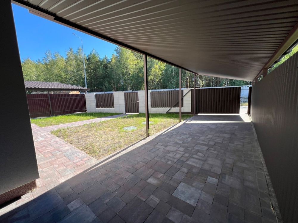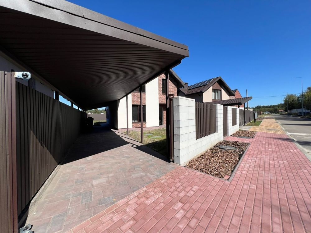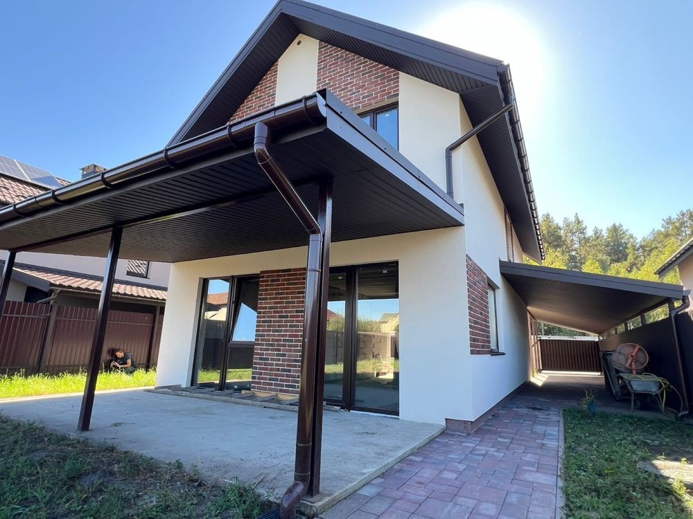 Будинок 110м2 + 60 м2 навіс під 3 авто + 20 м2 тераса - в котеджному містечку Сосновий Бір в Биківні біля метро Лісова (локацію олх показує неправильно): якісні будівельні матеріали - дах Averdi (цинк 220/м2), вікна Rehau 5 камер профіль, 3 скла, аргон, енергозберігаюче. Фасад Ceresit.