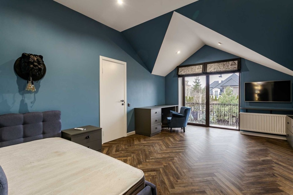 - майстер спальня з власним гардеробом, санвузлом та кабінетом.