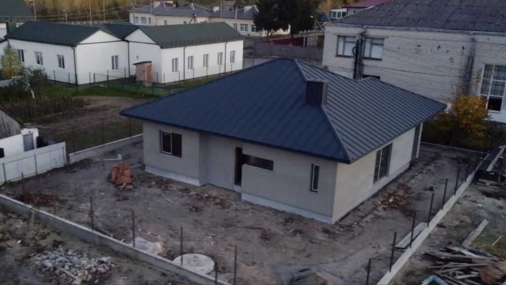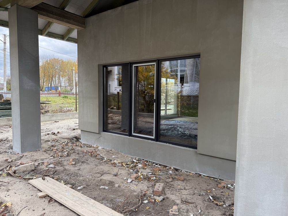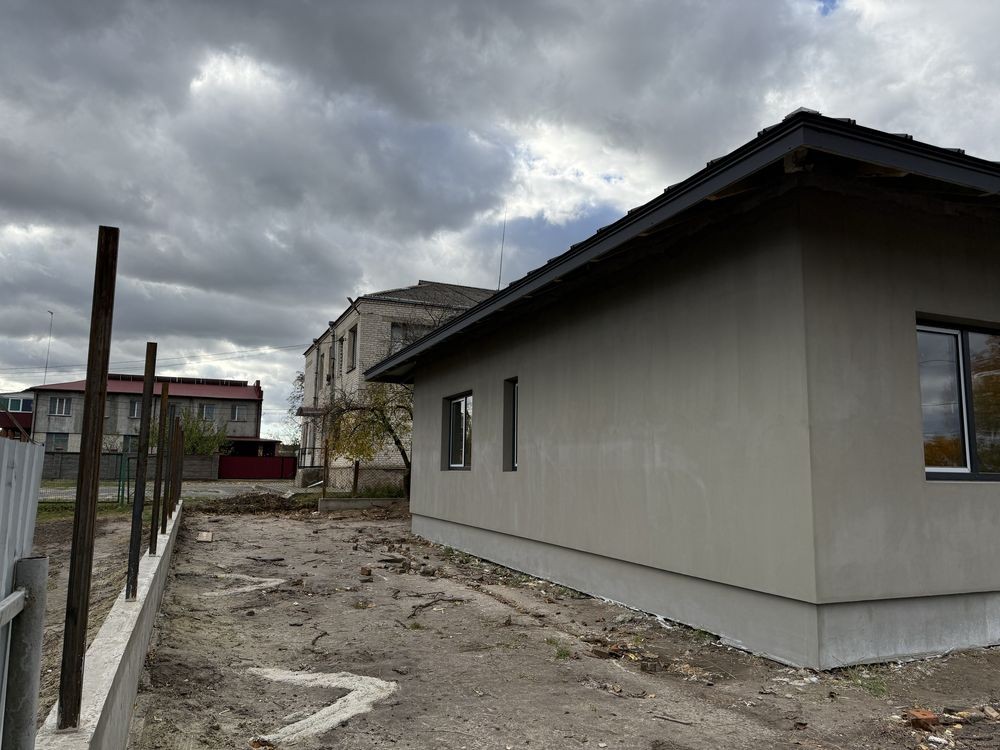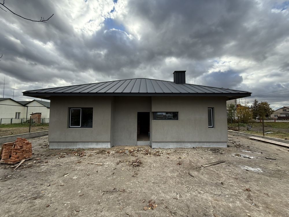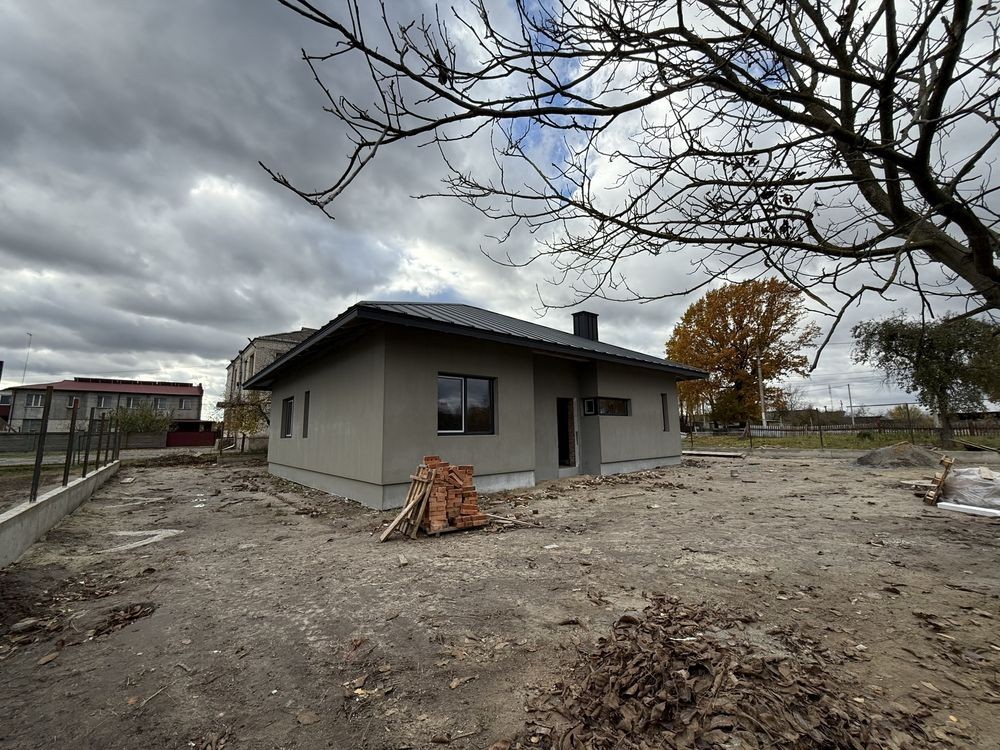 Новий сучасний будинок з 3 кімнатами, кухнею-вітальнею, 3 санвузлами, паливною, коморою, гардеробом та терасою.