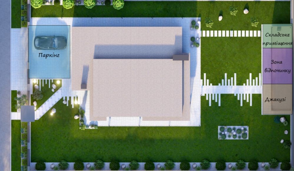 Будинок з ремонтом, виконаним відповідно до дизайн-проєкту. Також розроблений проєкт ландшафтного дизайну.
