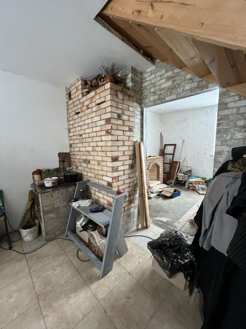 В будинку є піч, обігріває увесь будинок, також не дороблений камін.