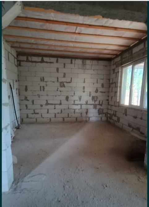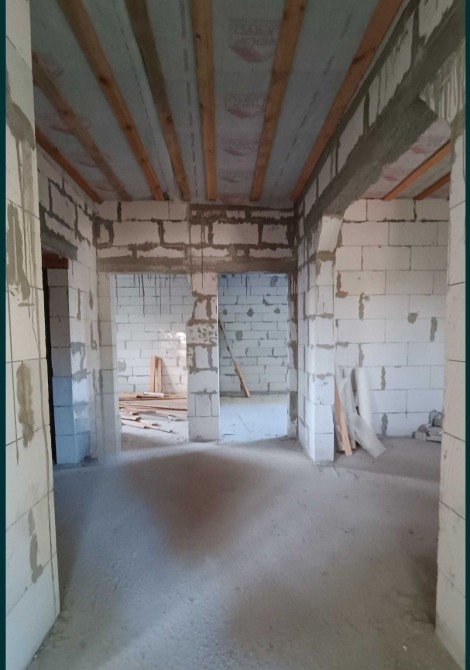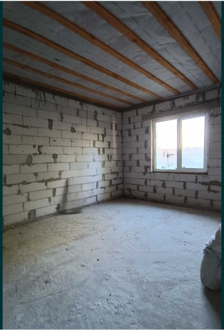 Будинок площею 100 м², без ремонту — тож ви зможете облаштувати його на свій смак. Всередині — дві кімнати, кухня, санвузол. Побудований із піноблоку товщиною 300 мм, додатково утеплений пінопластом 50 мм, що забезпечує надійну теплоізоляцію.