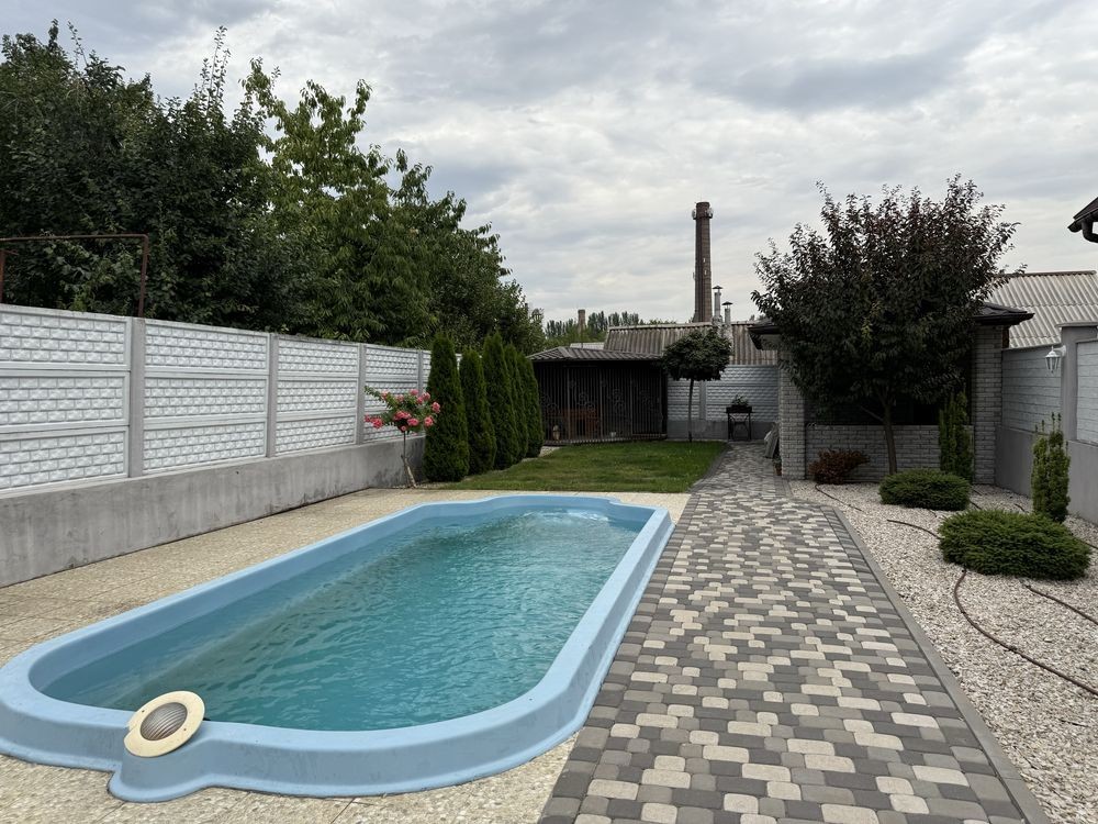 Продається прекрасний будинок, розташований у м. Запоріжжя Шевченківському районі, поруч з Шеки Лєндом по вул. Чарівна, пішки до зупинки 2 хвилини. 220 квадратних метрів, три спальні, дві ванні кімнати, кабінет, кухня студія. Гараж на два авто, басейн, альтанка, вольєр для собаки, газон, автоматичний полив, хвойні дерева. Газовий котел, сауна. Є підвал для укриття. Торг есть.