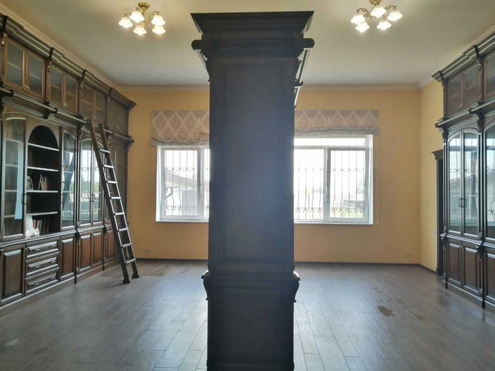У будинку 7 кімнат, кухня - 24м2, камінний зал 33м2, спальня-28м2, бібліотека-40м2, 3 спальні по 14м2, 3 гардеробні кімнати, 3 санвузли (2 з душовими кабінками, 1 з ванною).