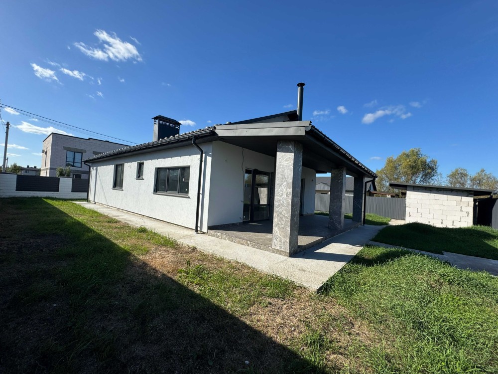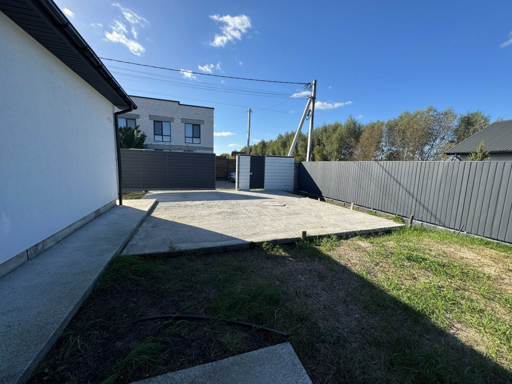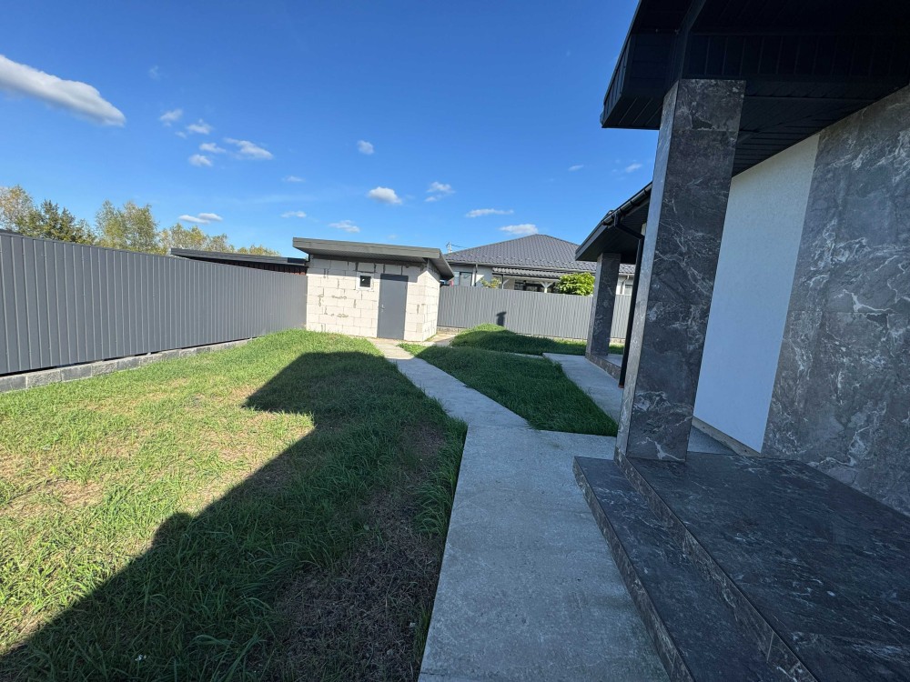 На продаж пропонується одноповерховий будинок у Бучі на вулиці Лисенка. Загальна площа становить 112,37 м², ділянка – 6,5 соток із парканом та місцем для двох автомобілів. Будинок новий, з сучасним ремонтом у світлих тонах і готовим дизайн-проєктом, що дозволяє облаштувати простір під індивідуальні потреби.