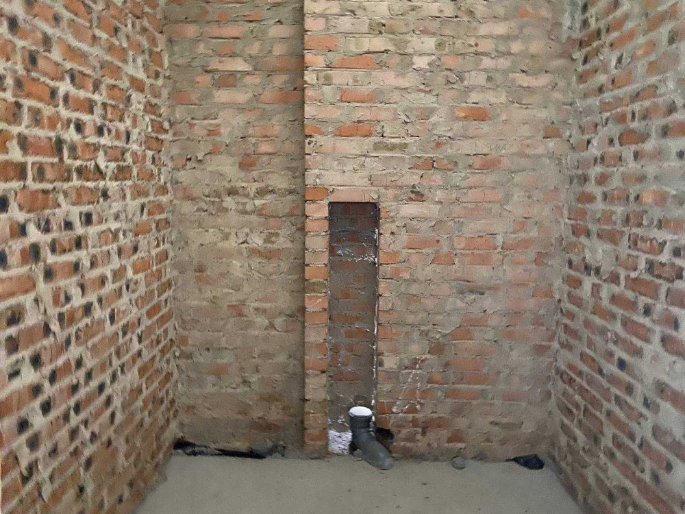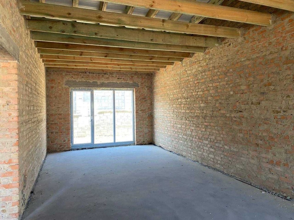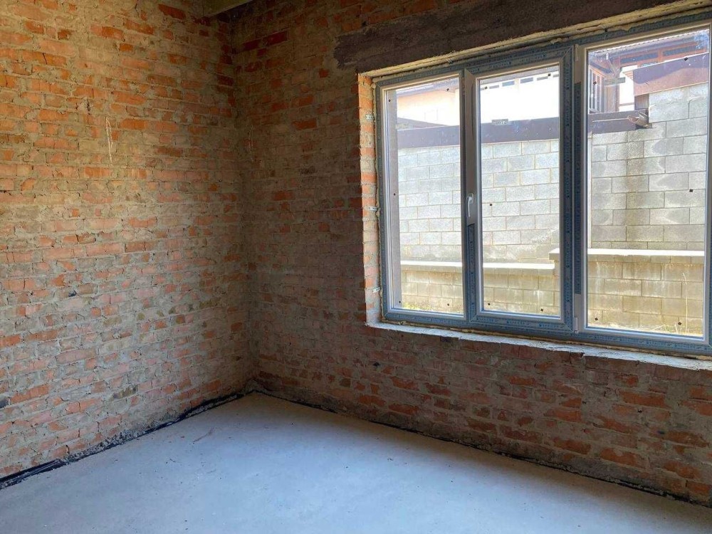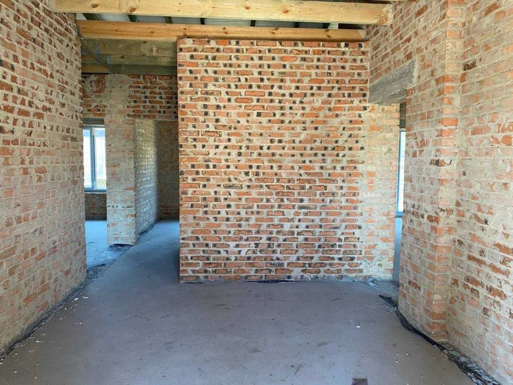 Збудований будинок з червоної цегли.