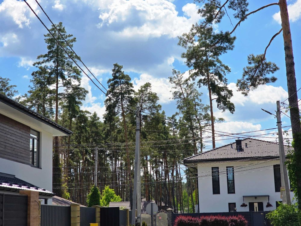 Довкола лише нові будинки та сосновий ліс.