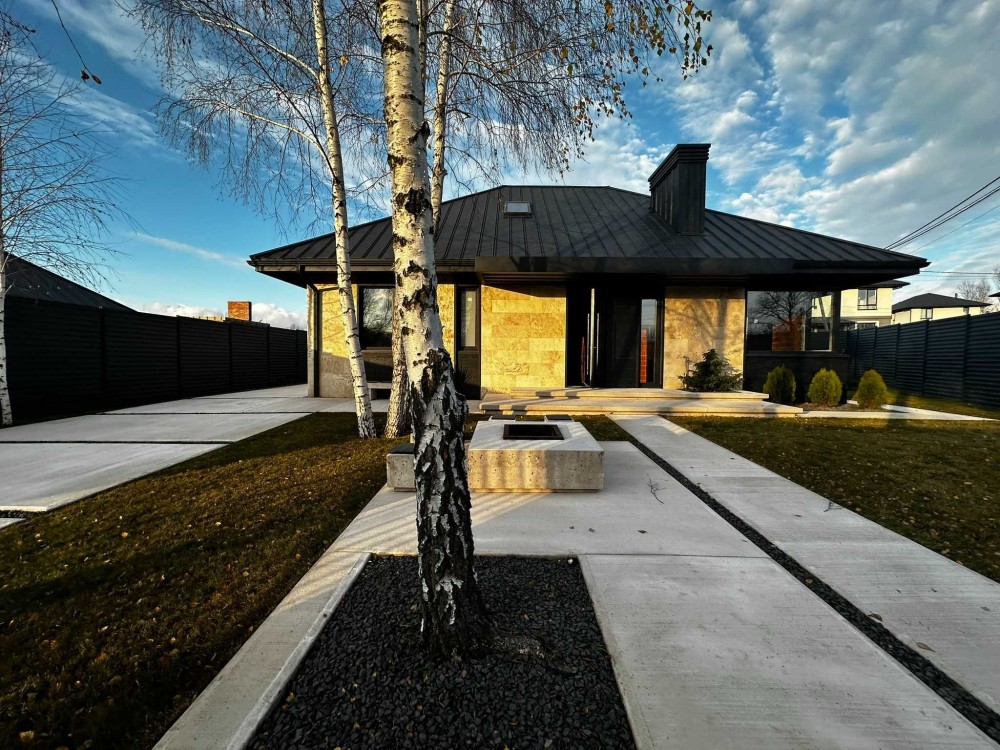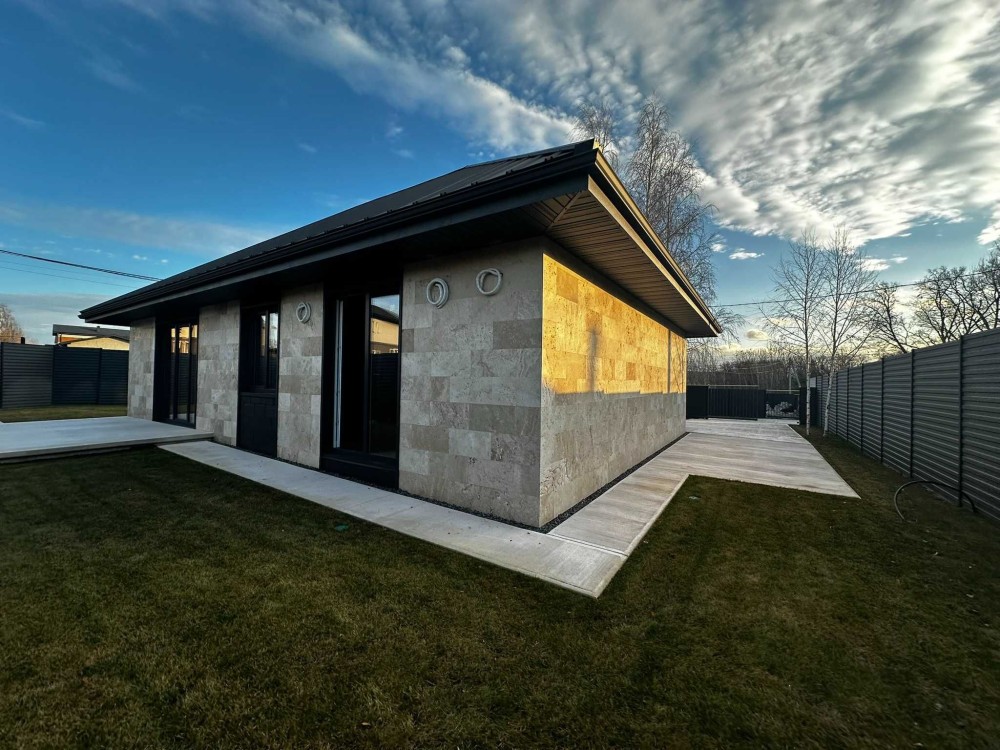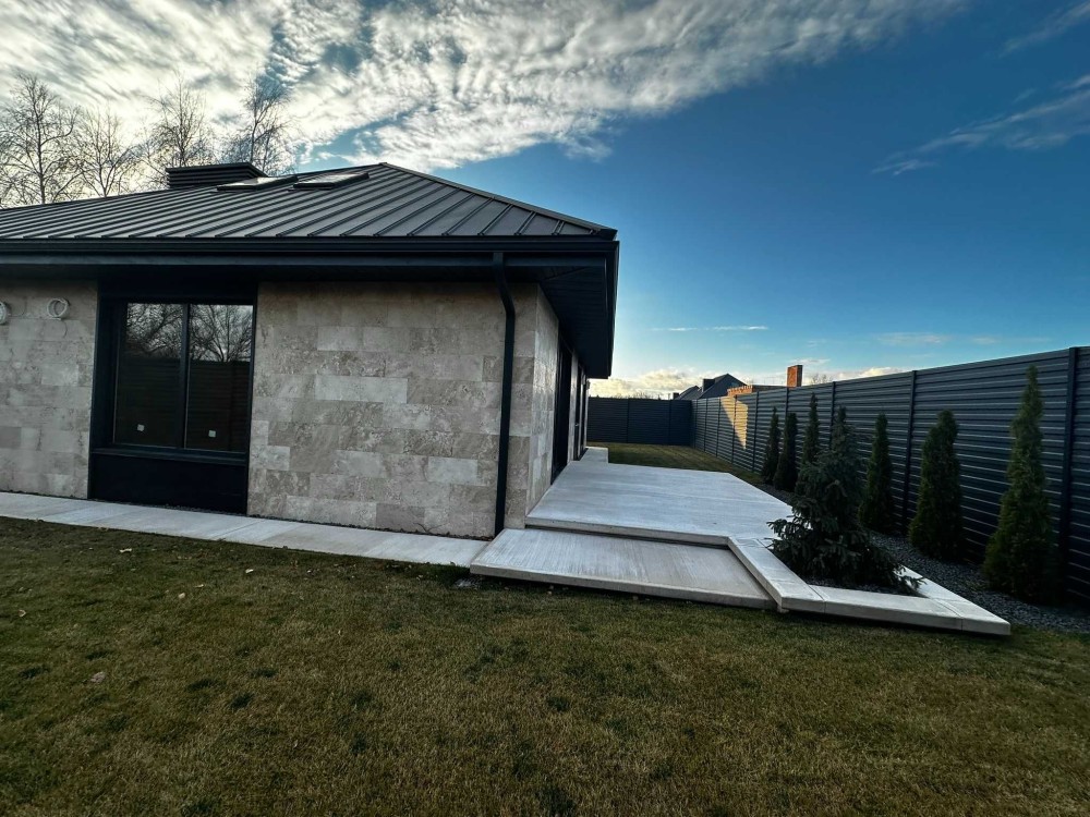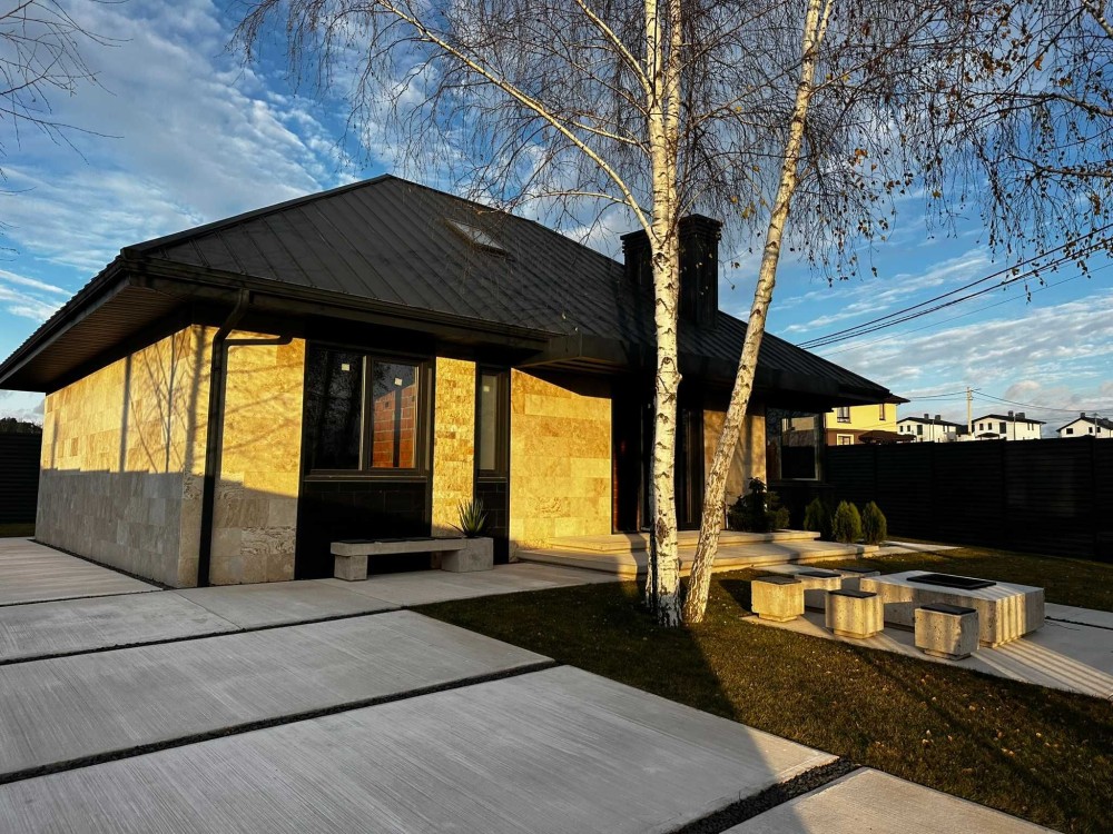 ️ Дах преміум класу, фасад з натурального каменю: травертин і сланець