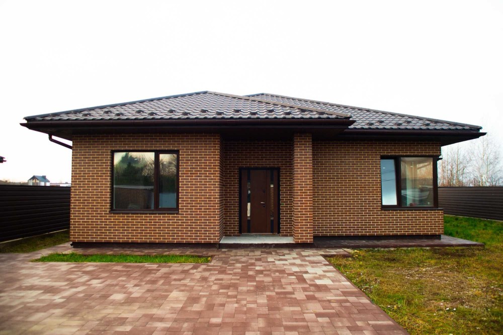 Будинок збудований із газоблоку 300 мм, утеплений пінопластом 100 мм і клінкерними термопанелями.