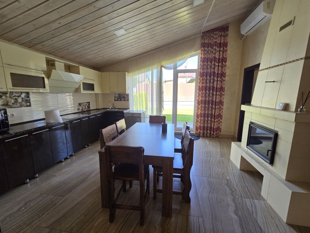 Меблі, техніка, кондиціонер, система охорони з відеонаглядом, камін, генератор, вольєр, велика барбекю зона, піднавіс на два авто.